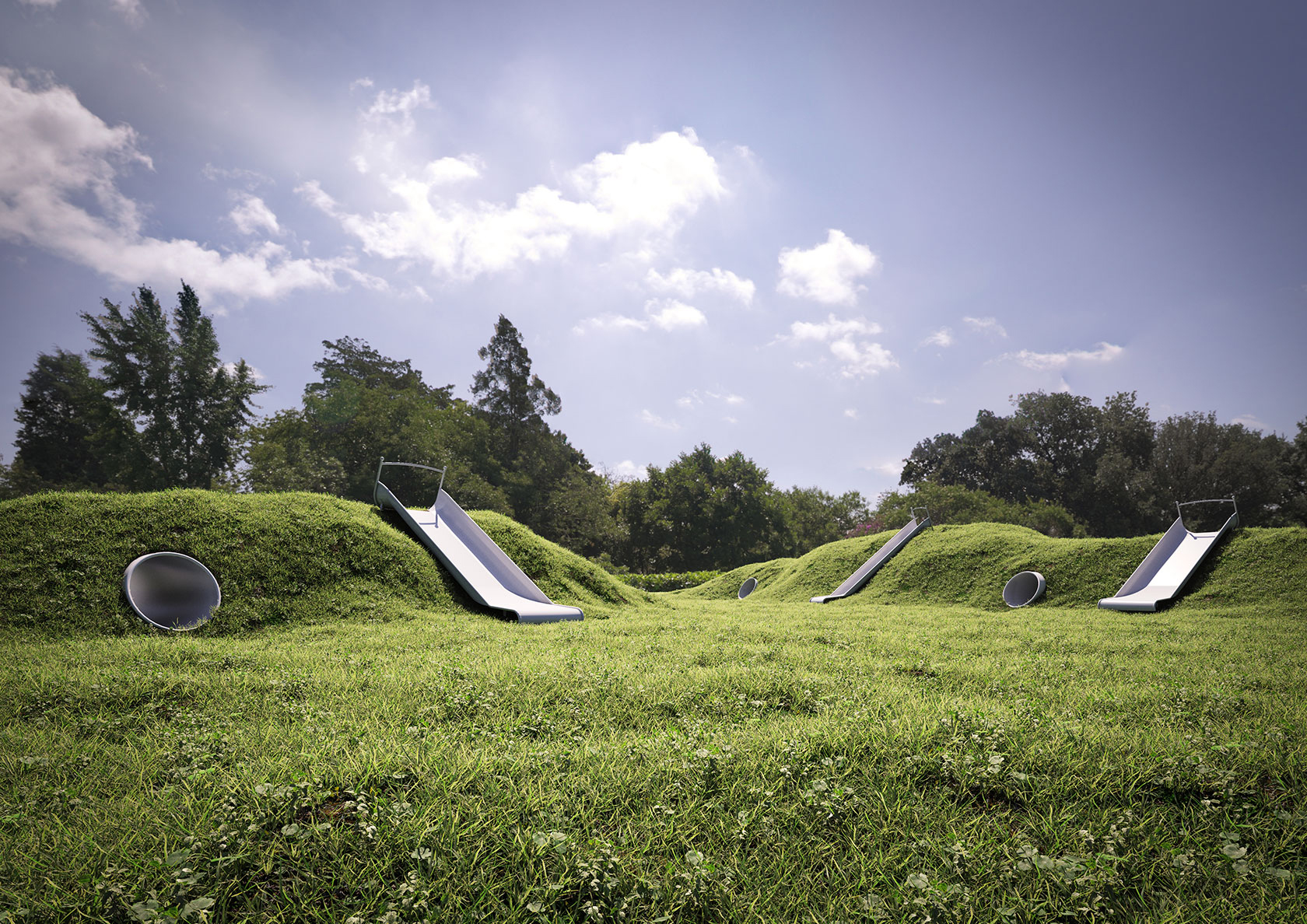 Karakteristika ove linije su tunelske cijevi i tobogani od nehrđajućeg čelika koji su namijenjeni područjima nasipa. Nudimo različite duljine tobogana i tunelskih cijevi koje vaši klijenti mogu odabrati. Ovakav proizvod zasigurno jamči puno zabave za svako dijete.