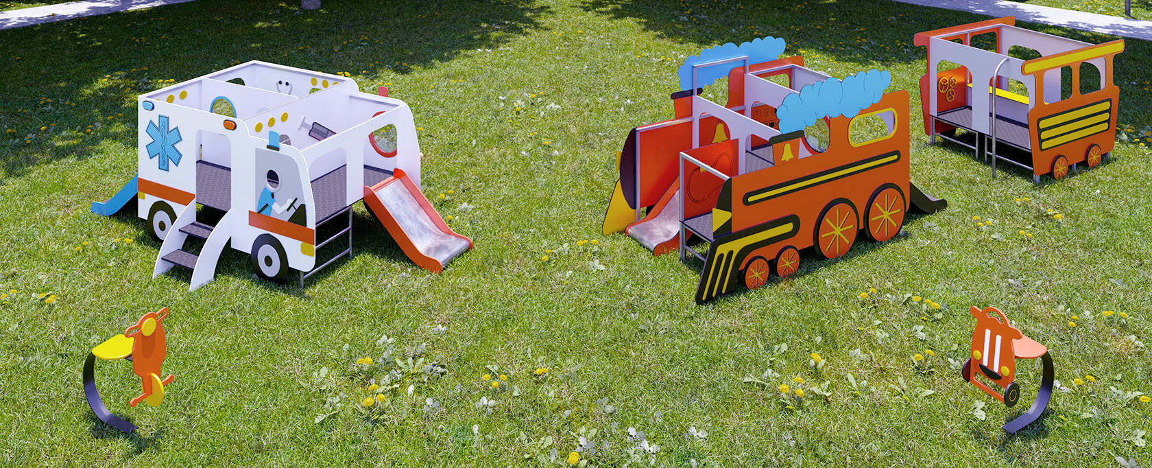 Serija TRANSPORTO su igračke za igrališta u obliku vozila za školsku i predškolsku djecu.