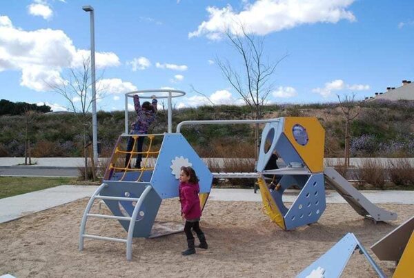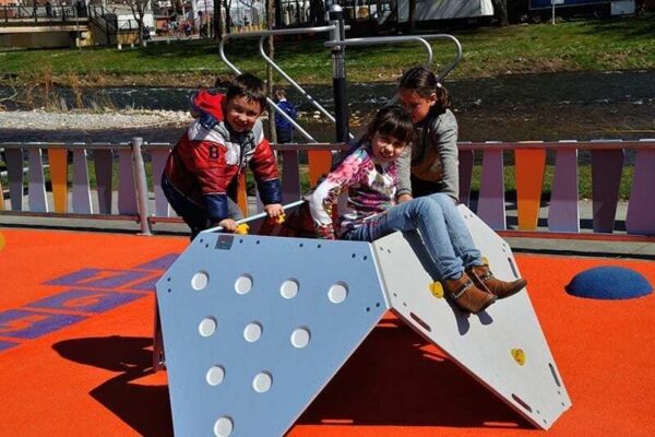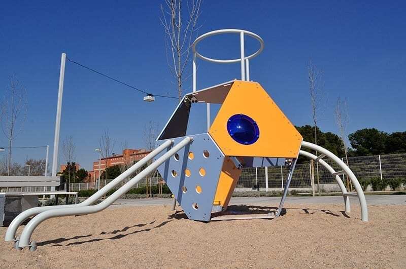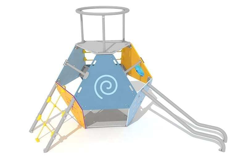 Uključuje kružni ulaz, rotirajući kotač, geometrijske uzorke, mrežu za penjanje, ljestve u obliku mosta, ljestve od užeta, klizne šipke i platformu s kružnim vidikovcem.