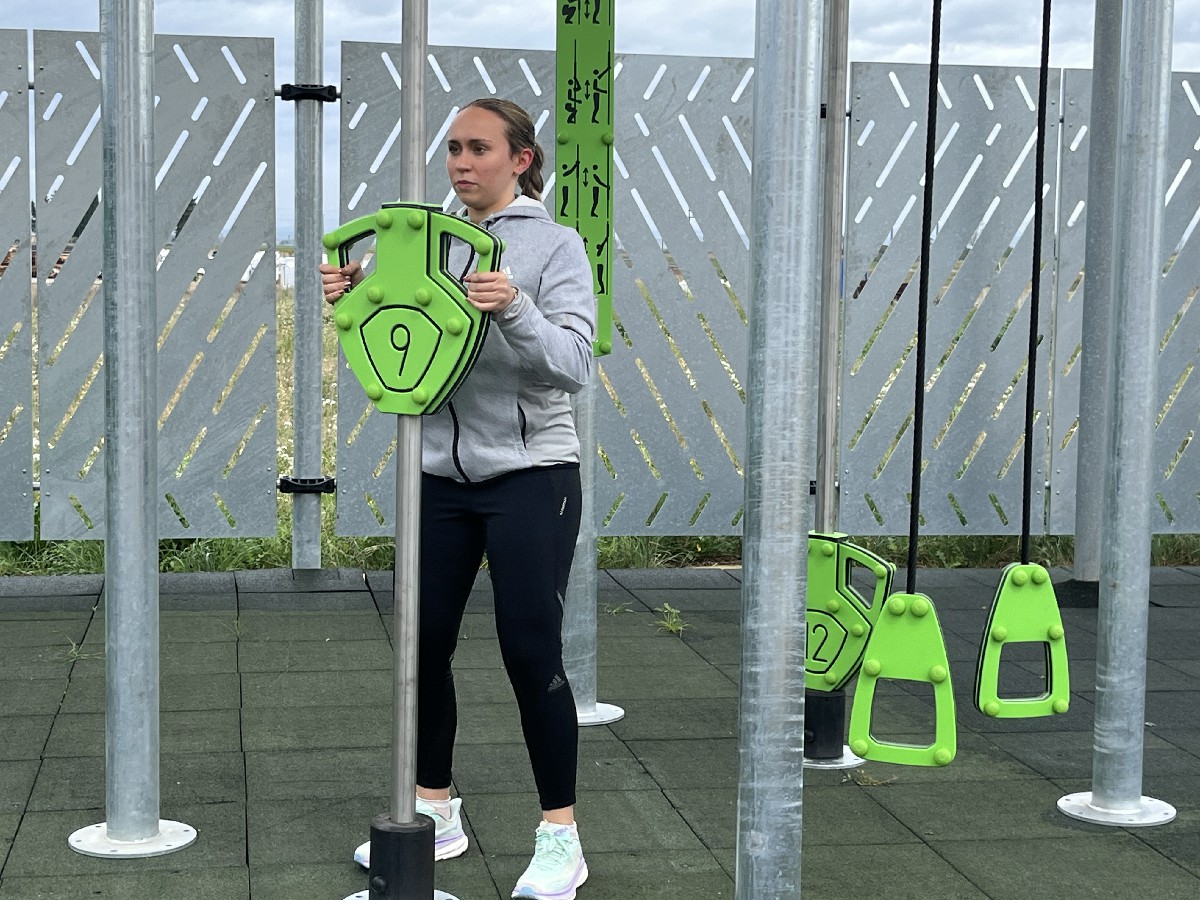 Četverokutna kutija s 2 kettlebella (9 i 12 kg) i 2 užeta za vješanje veličine M i L.