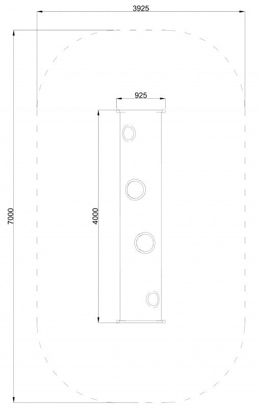 Samostojeća cijev dužine 4,0 m opremljena s 4 prozora. Izrađena je od mat nehrđajućeg čelika. Promjer cijevi je 780 mm