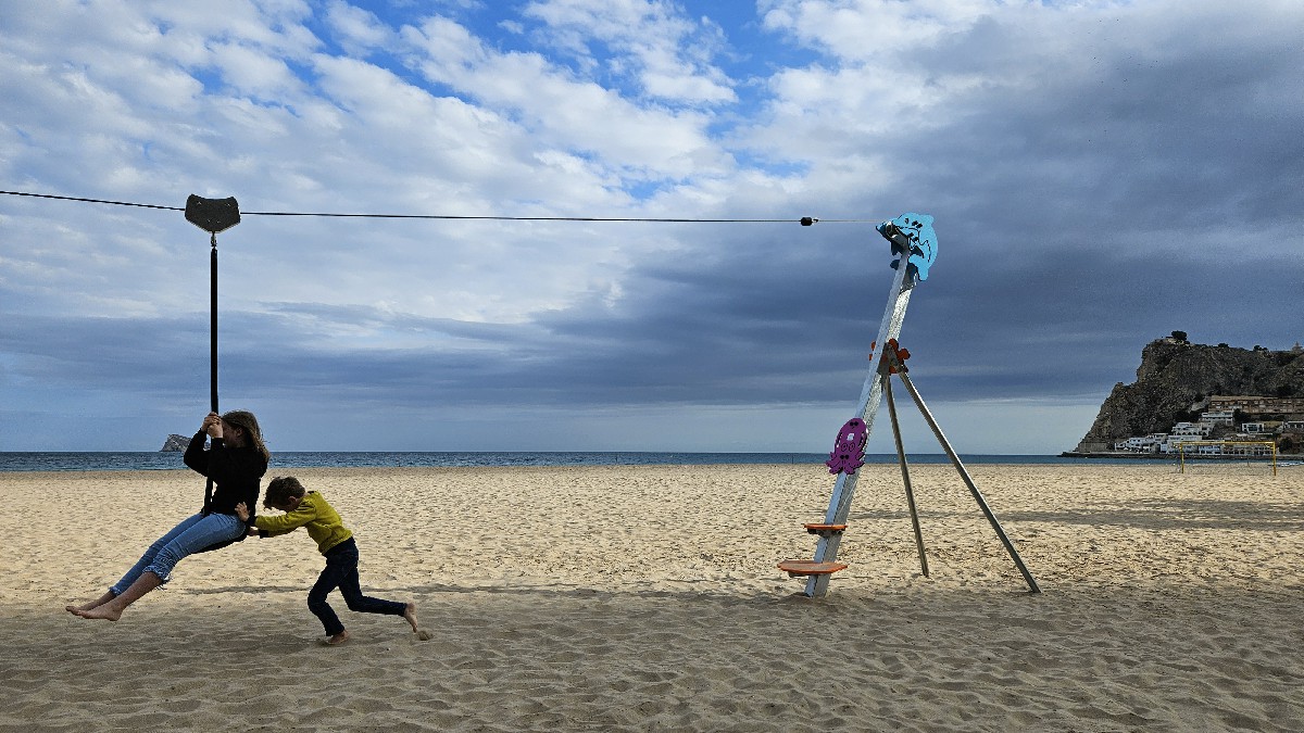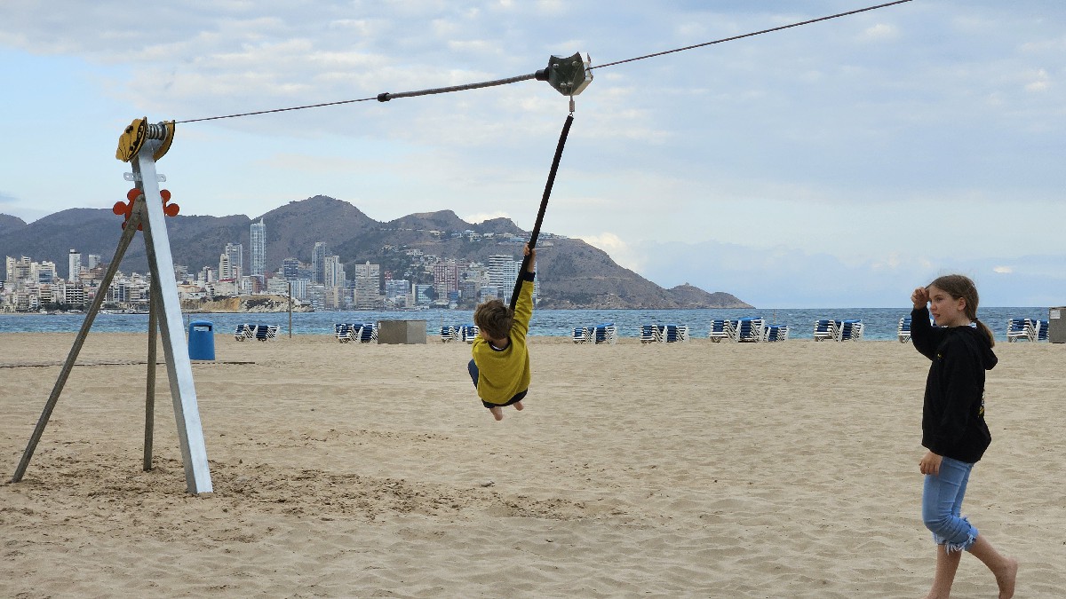 20 m dugačak čelični nebeski jahač. Korisnik može kliziti s višeg na niži kraj pomoću gravitacijske sile.