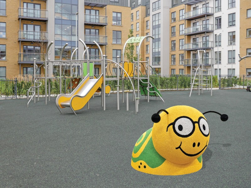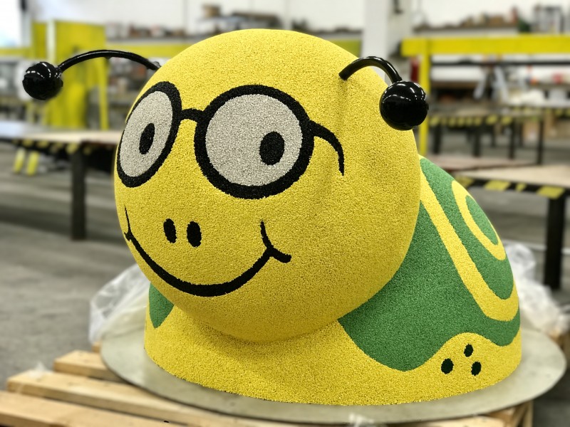 Igračka za igranje u obliku puža izrađena od visokokvalitetnog gumenog granulata otpornog na UV zračenje. Dug je vijek trajanja, pogodan za vanjsku i unutarnju upotrebu. Proizvod je pronašao put do brojnih igrališta diljem svijeta zahvaljujući svom atraktivnom obliku, jedinstvenom dizajnu i velikoj dodanoj vrijednosti.
