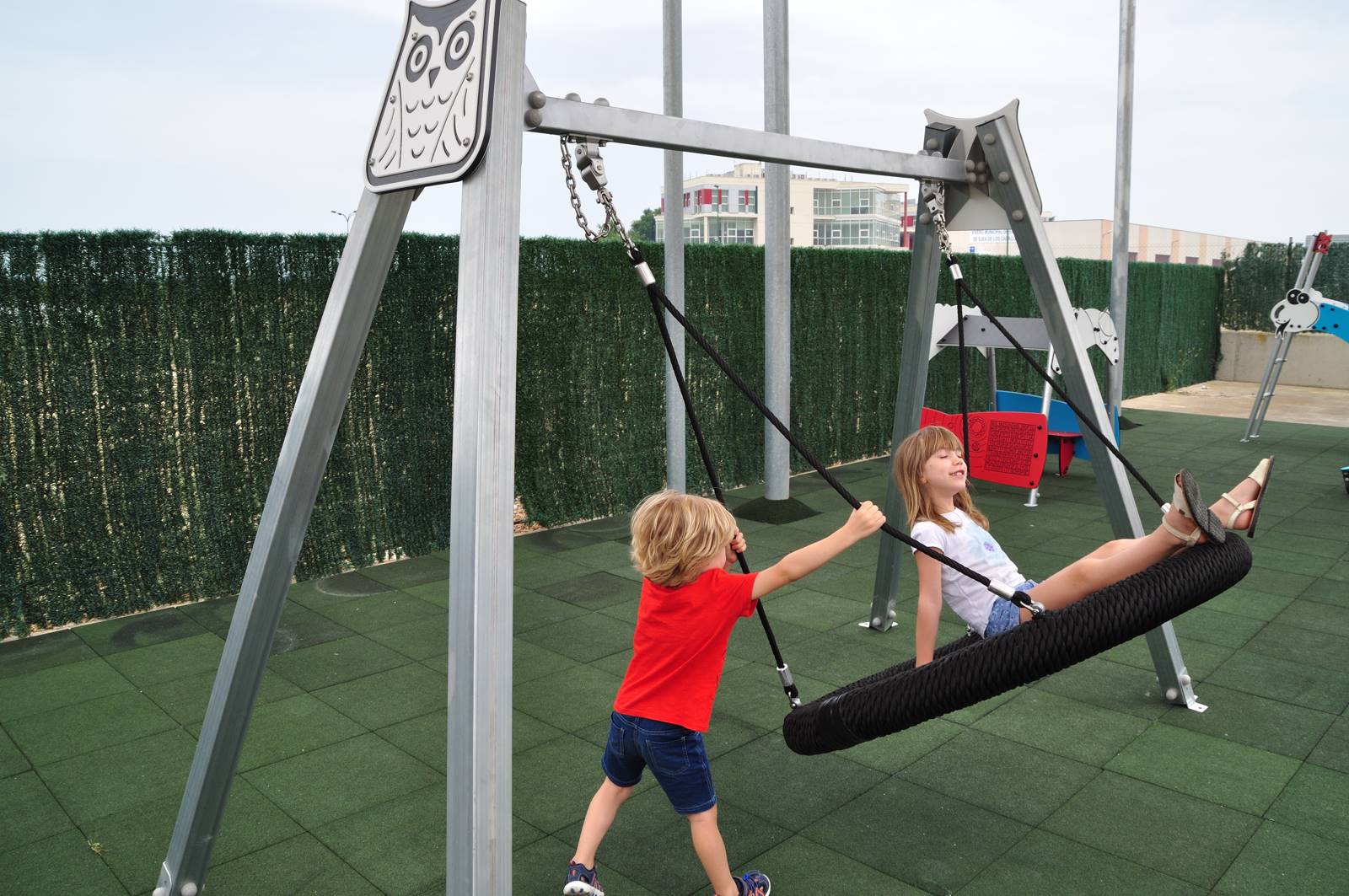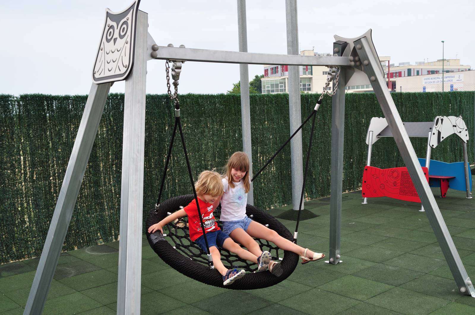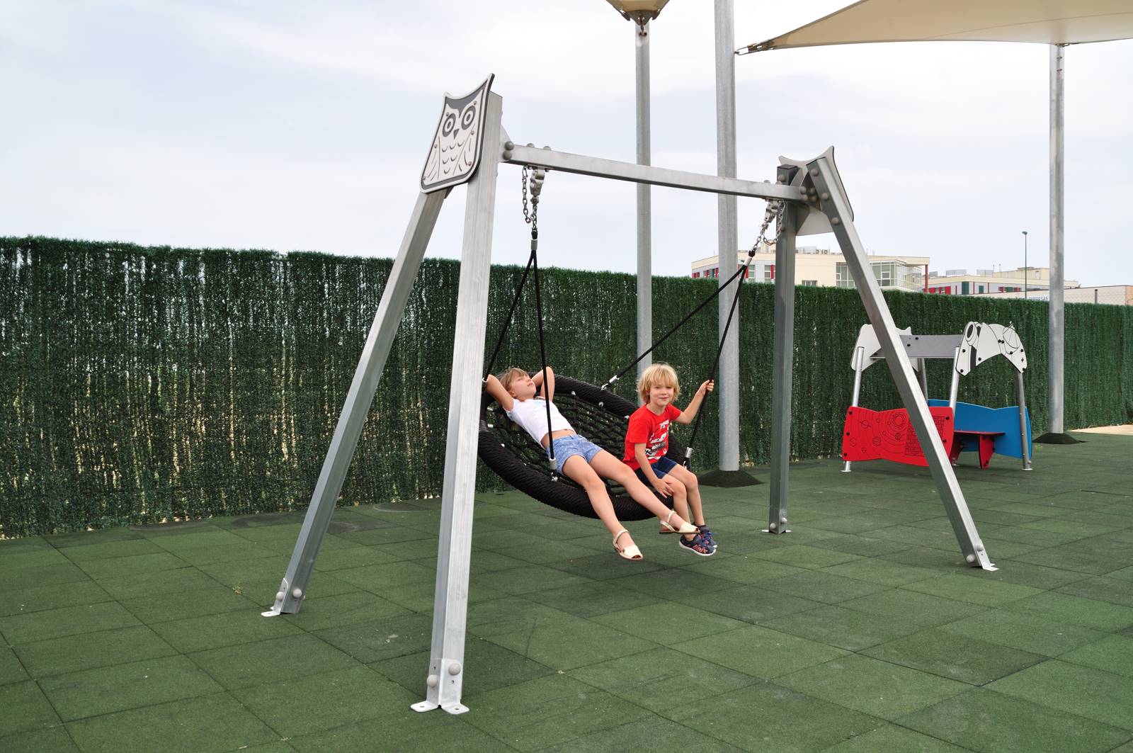 Ljuljačka Watchful Owl u obliku gnijezda prikladna je za djecu s ograničenom pokretljivošću. Kolijevka od užeta obješena je o čvrstu konstrukciju od pocinčanog čelika s motivom dvije prijateljske polietilenske sove. Povoljna ljuljačka koja odgovara niskim budžetima bez žrtvovanja kvalitete i sigurnosti za djecu, ispunjavajući sve sigurnosne zahtjeve norme EN1176.