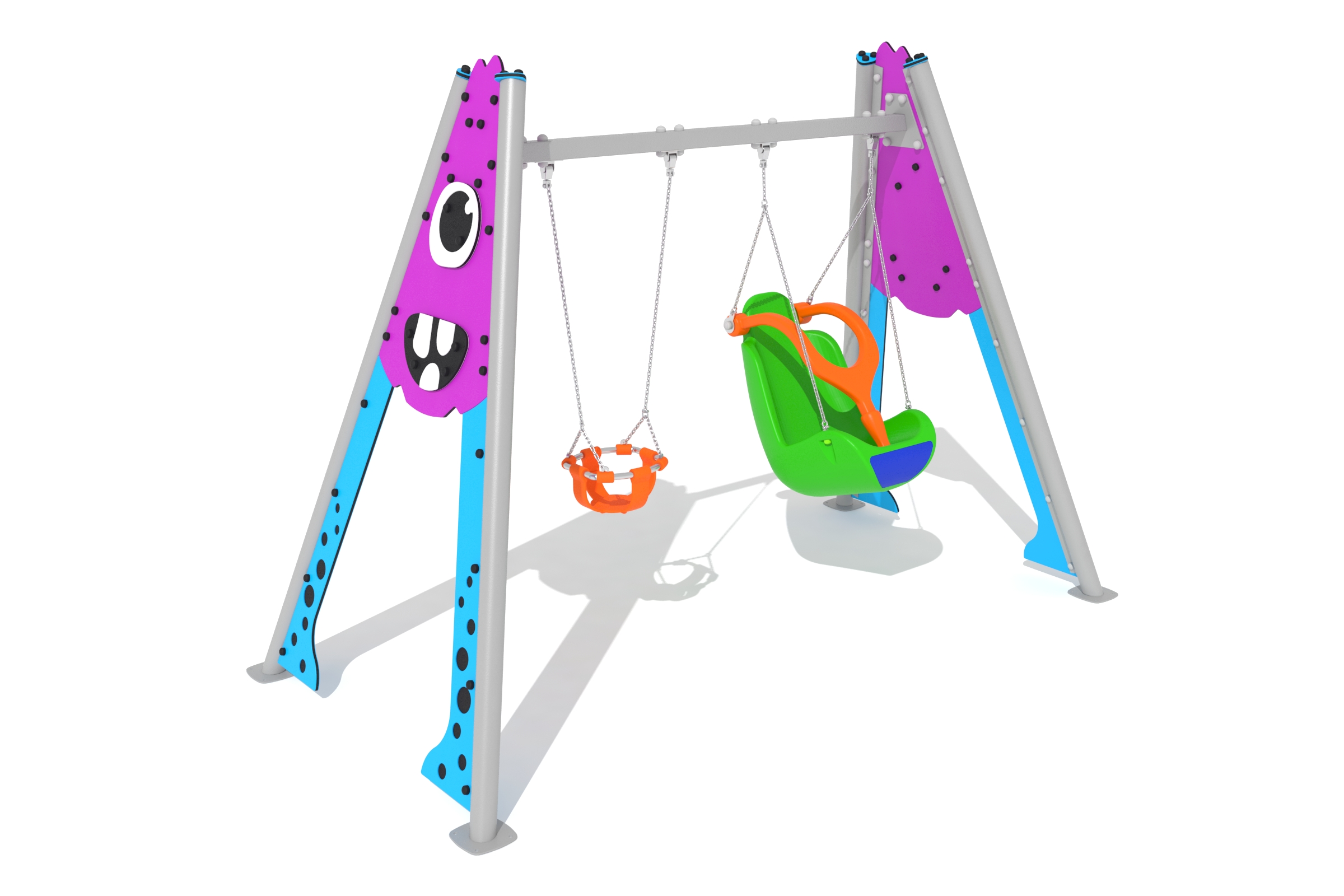 Inkluzivna ljuljačka Spooky Clumsy za djecu s invaliditetom i bebe idealan je izbor za inkluzivna dječja igrališta, a uključuje sjedalo za bebe i prilagodljivo roto-lijevano sjedalo s certificiranim sklopivim pojasom na istoj ljuljački.