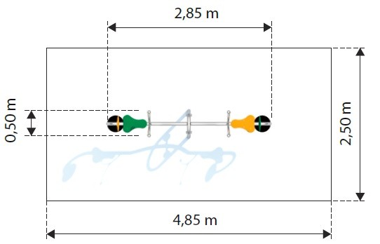 Dječja klackalica s dva sjedala i dvije ručke i naslonom za leđa. Klackalica živih boja sa stilistikom koja se odnosi na oblike puža. Konstrukcija od nehrđajućeg čelika otporna na vremenske uvjete i intenzivnu uporabu. Sprava za igralište uključuje dva branika ispod sjedala kako bi se osigurala sigurnost tijekom igre. Sjedala su izrađena od HDPE materijala. Zbog ovog rješenja sjedala se ne griju tijekom sunčanih dana i ne smrzavaju se tijekom zime. Obje ručke završavaju ukrasnom okruglom kuglom u obliku puža.
