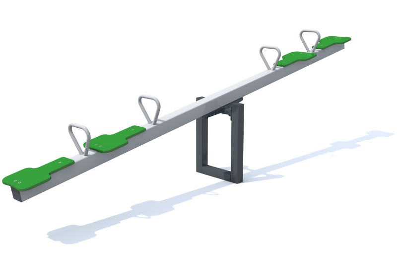 Klackalica namijenjena za 4 osobe. Konstrukcija izrađena od pocinčanog čelika otpornog na vremenske uvjete i intenzivnu upotrebu. Boja konstrukcije je siva, boja sjedala je zelena. Klackalica namijenjena djeci u dobi od 3 do 16 godina.