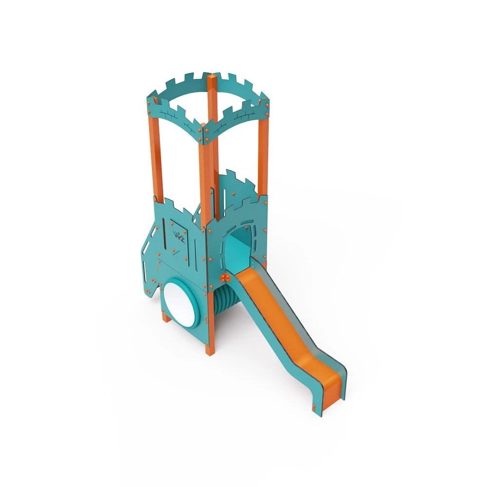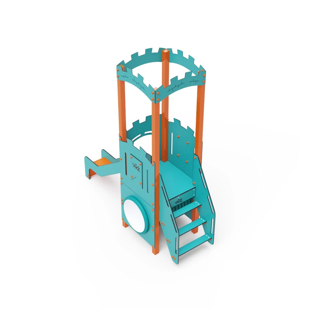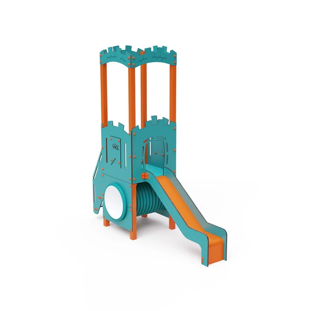 Kombinirani set s jednim tornjem – toranj s grudobranama na koje se djeca mogu penjati stepenicama i spuštati niz tobogan. Mogu se igrati i u tunelu koji se nalazi ispod tornja. Tirkizno-narančasti dizajn privlači djecu na igru iz daljine. Čelična konstrukcija otporna je na vremenske uvjete zahvaljujući vrućem pocinčavanju i premazu izdržljivom praškastom bojom. Korišteni HPL materijal je kemijski otporan, UV otporan – postojane boje, netoksičan, reciklirajući i nelomljiv. To sprječava ozljede djece od oštrih rubova ili fragmenata. Svi spojevi su od nehrđajućeg čelika i prekriveni plastičnim kapicama radi povećanja trajnosti i sigurnosti.