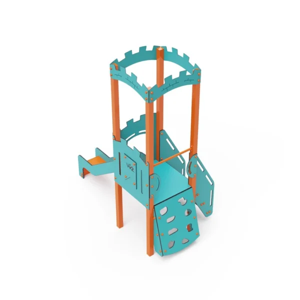Set s tri tornja sastoji se od dva tornja povezana sa središnjim tornjem sa zidovima pomoću mosta od užeta i tunela. Djeca se mogu penjati po konstrukciji pomoću stepenica, vertikalne stijene za penjanje s rukohvatima ili mreže od užeta, a mogu se i spuštati niz jedan od tri tobogana. Tirkizno-narančasti dizajn privlači izdaleka. Čelična konstrukcija otporna je na vremenske uvjete zahvaljujući vrućem pocinčavanju i premazu izdržljivom praškastom bojom. Korišteni HPL materijal je kemijski otporan, otporan na UV zračenje – postojan je u boji, netoksičan, reciklirajući i nelomljiv. To sprječava ozljede od oštrih rubova ili fragmenata. Užad su izrađena od poliesterskih vlakana namotanih oko središnje jezgre, što povećava njihovu čvrstoću i otpornost na mehanička naprezanja. Sam poliester otporan je na mikroorganizme i vremenske uvjete, brzo se suši nakon kiše, zadržava boju i ima visoku čvrstoću. Svi spojevi izrađeni su od nehrđajućeg čelika i prekriveni plastičnim kapicama radi poboljšanja trajnosti i sigurnosti.