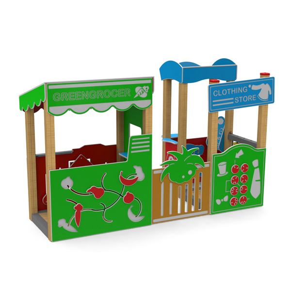 Igralo s drvenom konstrukcijom u obliku trgovine s raznim igrama.