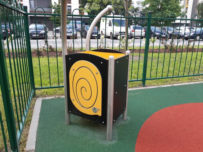 Konstrukcija od nehrđajućeg čelika otporna na vremenske uvjete i intenzivnu upotrebu. Ploče izrađene od HDPE materijala. Zahvaljujući ovom rješenju sjedalo se ne grije tijekom sunčanih dana i ne smrzava se tijekom zime. Stupovi završavaju ukrasnom okruglom kuglom. Kutiju unutar kante za smeće možete lako izvaditi i ponovno staviti kako biste uklonili smeće iznutra.
