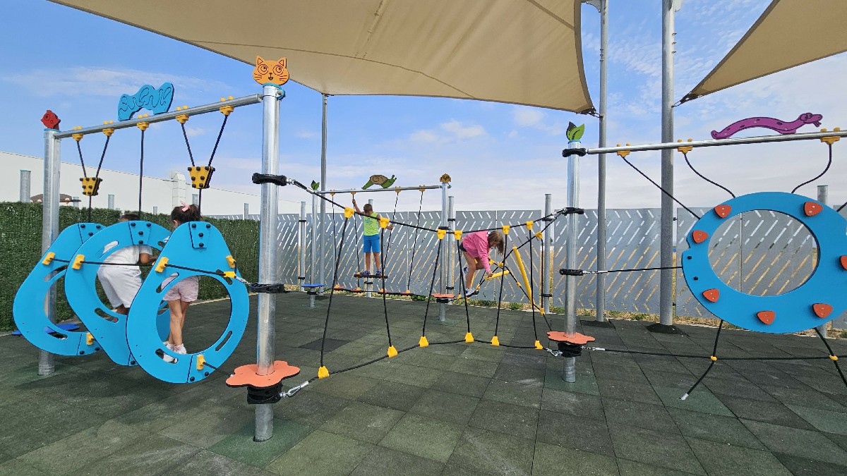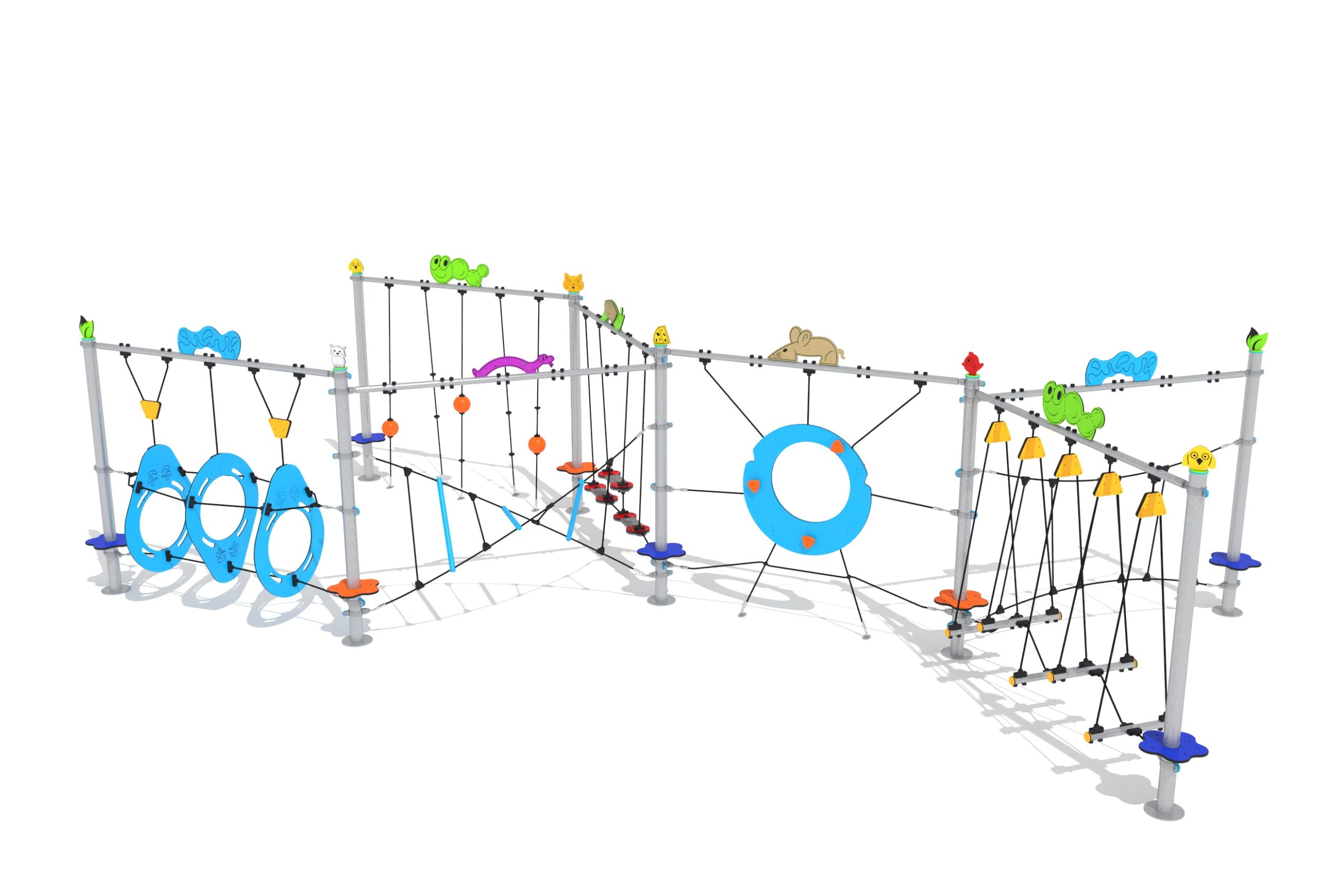 Uključuje viseći most s platformom, most s užetom s preprekama, most za promjenu položaja, uski most, set vertikalnih mreža, most s prečkom i stepenicama i set vertikalnih užadi, sve s tematskim panelima kako bi se pružilo razigrano i uzbudljivo iskustvo uz osiguranje sigurnosti male djece.