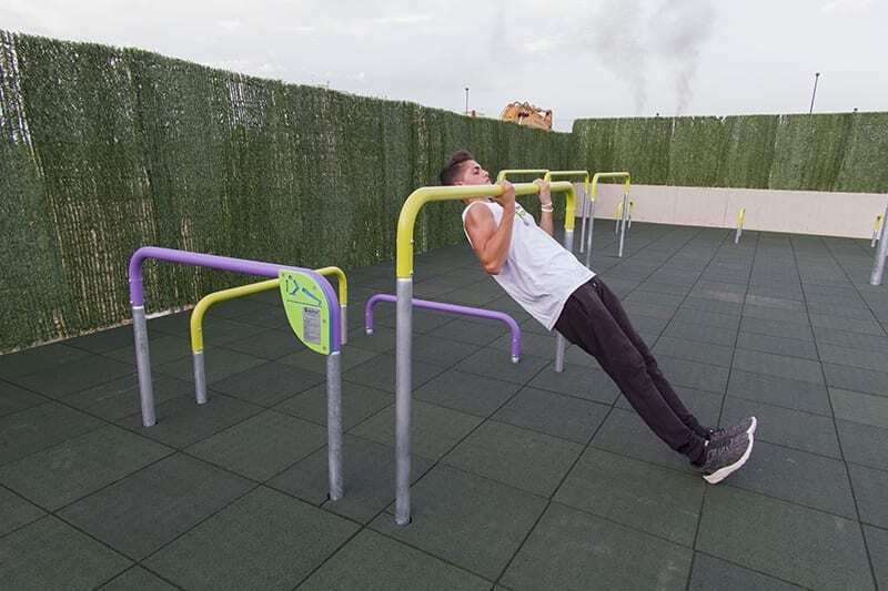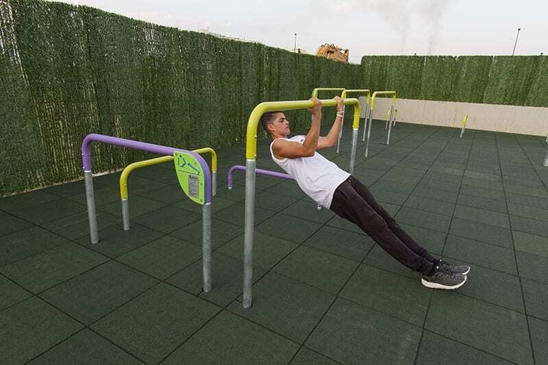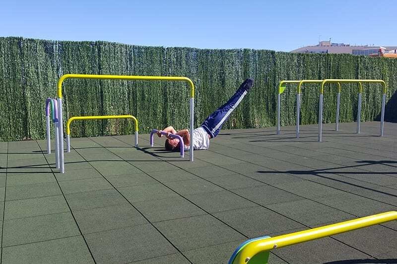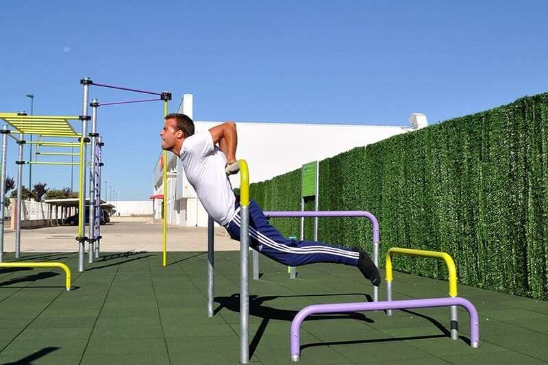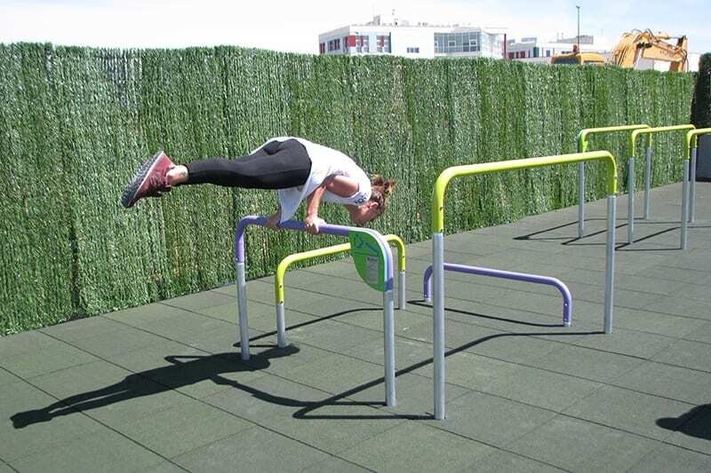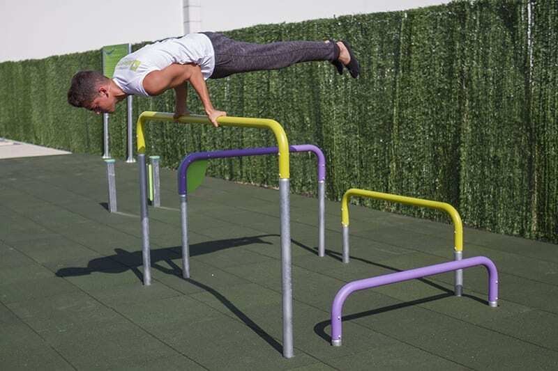 4 šipke različitih visina, koje tvore četverokut. Samo jedan korisnik po šipki. Vježba se mora izvoditi centrirano na šipki.