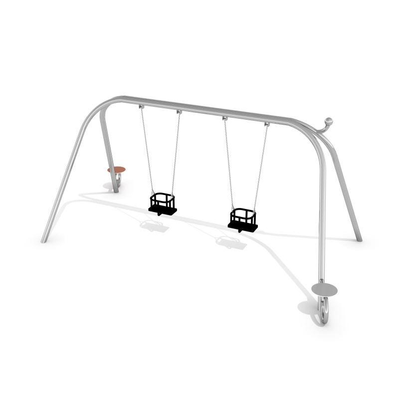 Dvostruka ljuljačka s baby box sjedalima namijenjena za 2 bebe sa stilistikom koja se odnosi na oblike puža i žive boje. Ljuljačka se sastoji i od dvije klupe za roditelje. Konstrukcija od nehrđajućeg čelika otporna na vremenske uvjete i intenzivnu uporabu. Klupe izrađene od HDPE materijala. Okviri koji završavaju ukrasnom okruglom kuglom koja se oblikuje u puževe.