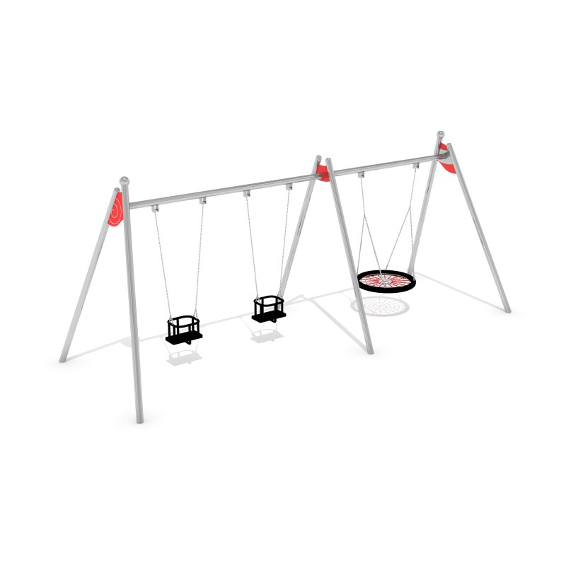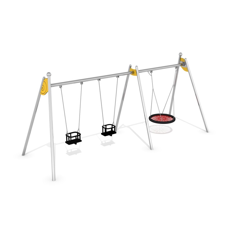 Trostruka ljuljačka sa stilistikom koja se odnosi na oblike puža i žive boje. Ljuljačka se sastoji od duplih ravnih sjedala i jednog sjedala ptičje gnijezdo koji su ovješeni na lancima. Konstrukcija od nehrđajućeg čelika otporna na vremenske uvjete i intenzivnu uporabu. Stupovi koji završavaju ukrasnom okruglom kuglom koja se oblikuje do puževa roga.