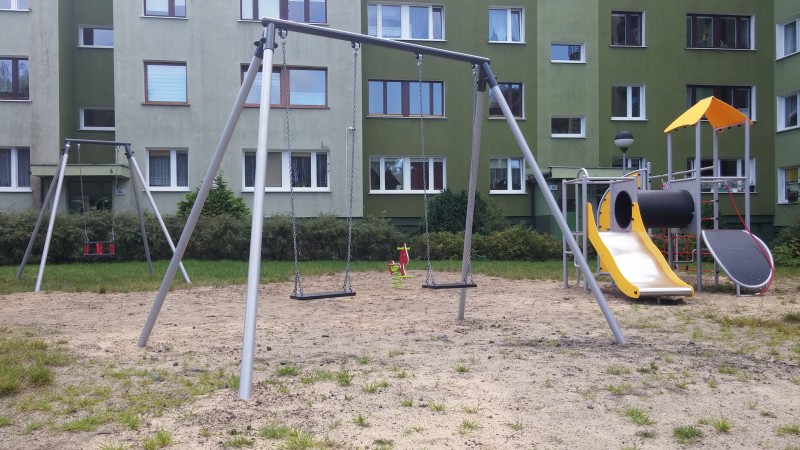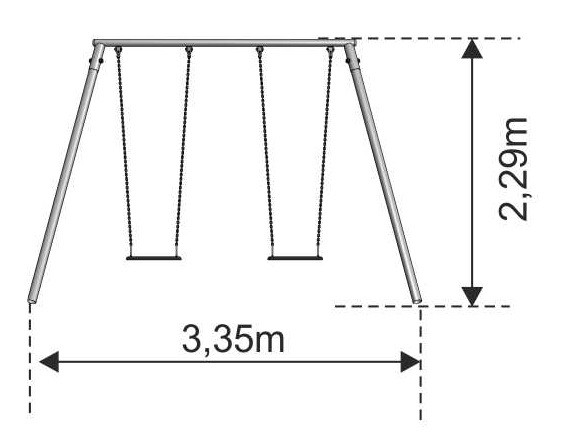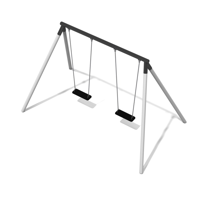 Dvostruka ljuljačka s ravnim sjedalima namijenjena za 2 osobe. Boja konstrukcije je siva i grafit, boja sjedala je crna. Ljuljačka namijenjena djeci od 3 do 16 godina.