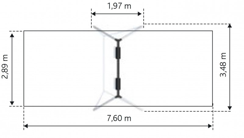 - Sigurnosna površina: 2,89 x 7,60 m