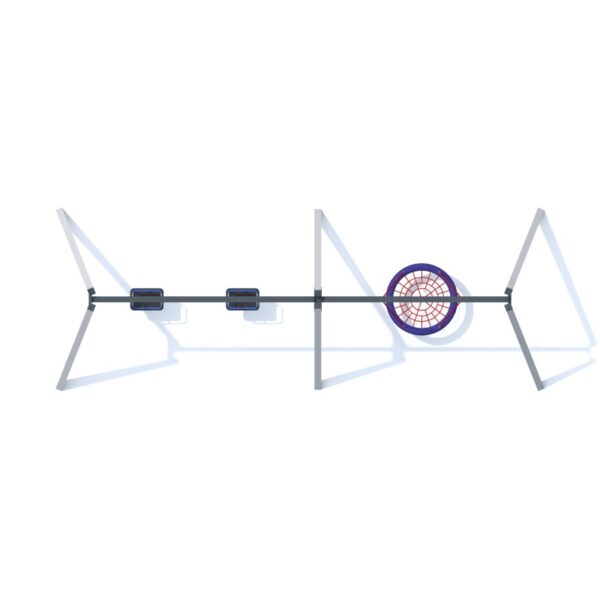 Višenamjenski set za penjanje s pet tornjeva. Konstrukcija seta je pocinčana, praškasto obojena i sastoji se od cijevi zaobljenog profila. Pod platforme prekriven je PE pločom s protukliznim točkicama. Opremljen je polipropilenskim užadima od 16 mm ojačanim čeličnom jezgrom. Površina tobogana izrađena je od nehrđajućeg čelika, stranice tobogana izrađene su od HDPE materijala. Plastični tobogan se može dodatno pričvrstiti.