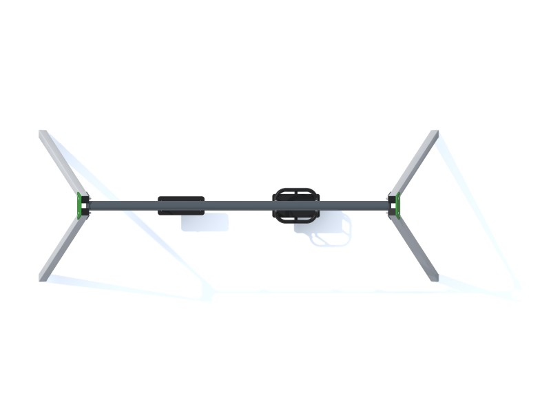 Dvostruka ljuljačka sastoji se od jednog ravnog sjedala i jednog sjedala za bebe koji su obješeni na lancima. Konstrukcija je izrađena od pocinčanog čelika otpornog na vremenske uvjete i intenzivnu upotrebu. Jednostavan i klasičan izgled.