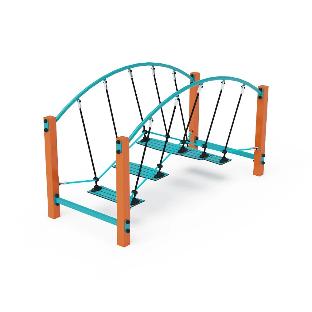 Lučni most za ravnotežu koji ne zahtijeva održavanje s HPL protukliznim gazištima obješenim na poliesterskim užadima element je igrališta osmišljenog za djecu kako bi vježbala koordinaciju, stabilnost i ravnotežu. Gazišta su obješena na različitim visinama za dodatnu zabavu. Izrađen je od vruće pocinčanog čelika, premazanog praškasto pečenom bojom za trajnost. Užad su izrađena od poliesterskih vlakana omotanih oko jezgre, što povećava njihovu čvrstoću i otpornost na mehanička naprezanja. Sam poliester nudi brojne pozitivne kvalitete: otporan je na mikroorganizme, vremenske uvjete, brzo se suši nakon kiše, održava stabilnost boje i pokazuje visoku čvrstoću. Za spajanje se koriste spojnice od nehrđajućeg čelika.