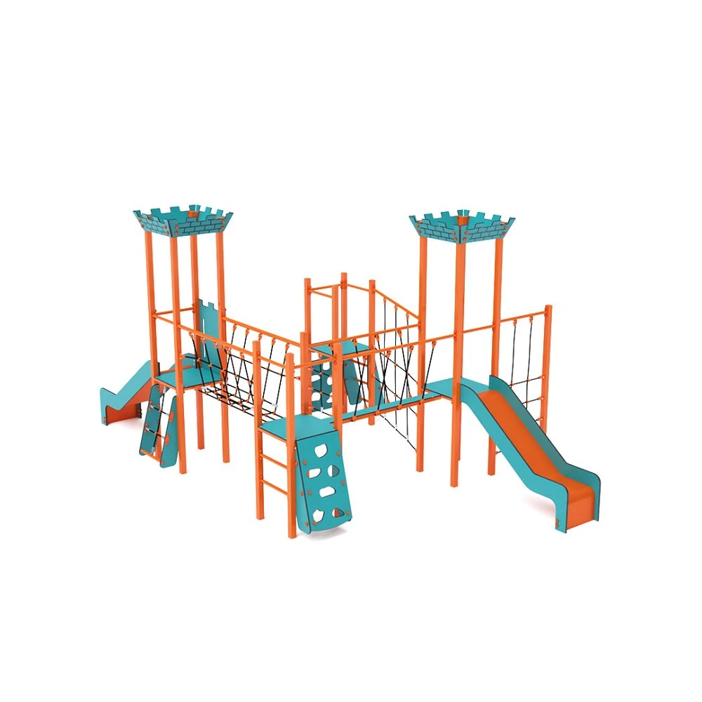 Kombinirani mini set za igru s četiri tornja. Tornjevi su međusobno povezani dijagonalnim mostom od užadi, mostom od greda i još jednim mostom od užadi. Djeca se mogu penjati po konstrukciji koristeći razne mogućnosti nagnutog pristupa kao što su zid za penjanje, ljestve za penjanje ili penjanje po užadi. Postoje i vertikalne opcije, uključujući zid za penjanje, ljestve i penjanje po užadi koje se nalaze izvan tornja. Za spuštanje, set za igru ima dva tobogana. Tirkizno-narančasta shema boja poziva na igru izdaleka. Čelična konstrukcija otporna je na vremenske uvjete zbog vrućeg pocinčavanja i izdržljivog praškastog premaza. HPL ploče su kemijski otporne, UV-stabilne – postojane boje, netoksične, reciklirajuće i nelomljive, što sprječava ozljede od oštrih rubova ili fragmenata. Svi spojevi su od nehrđajućeg čelika i prekriveni plastičnim kapicama za povećanu izdržljivost i sigurnost.