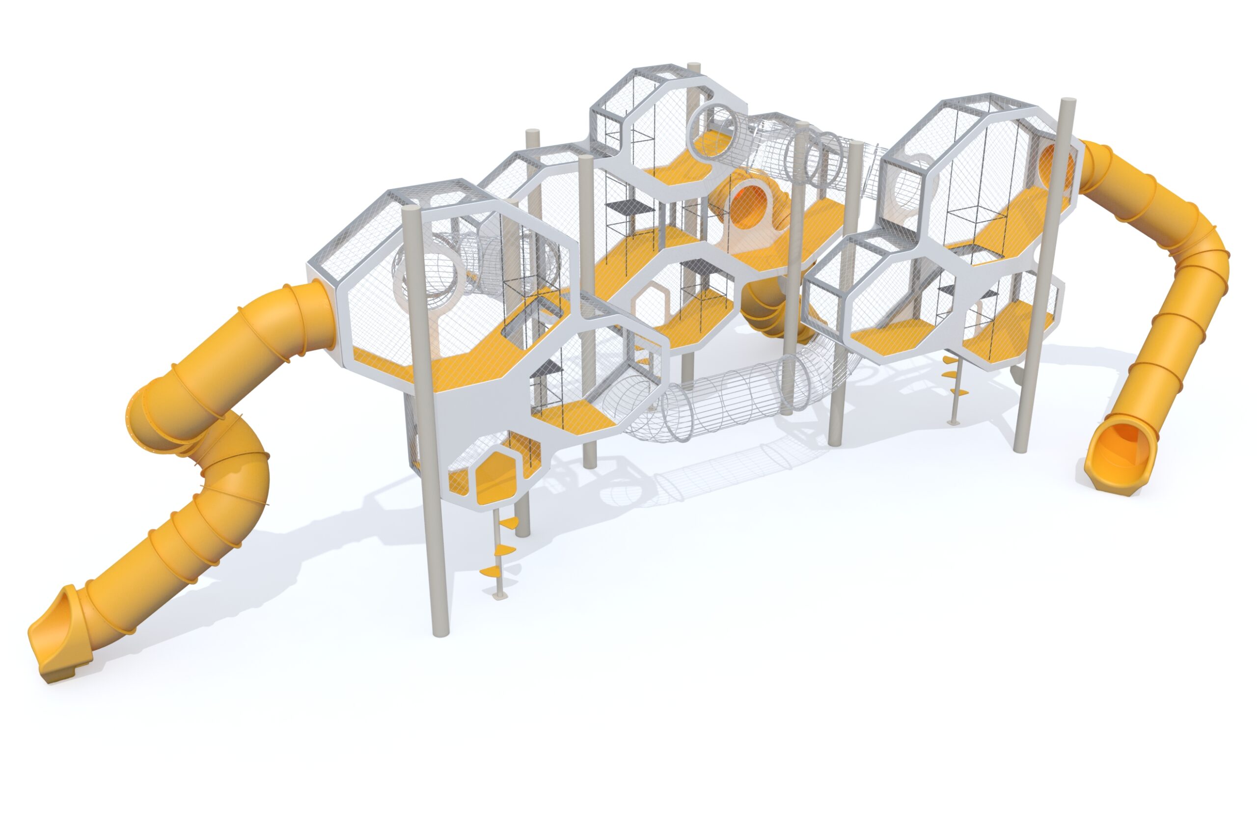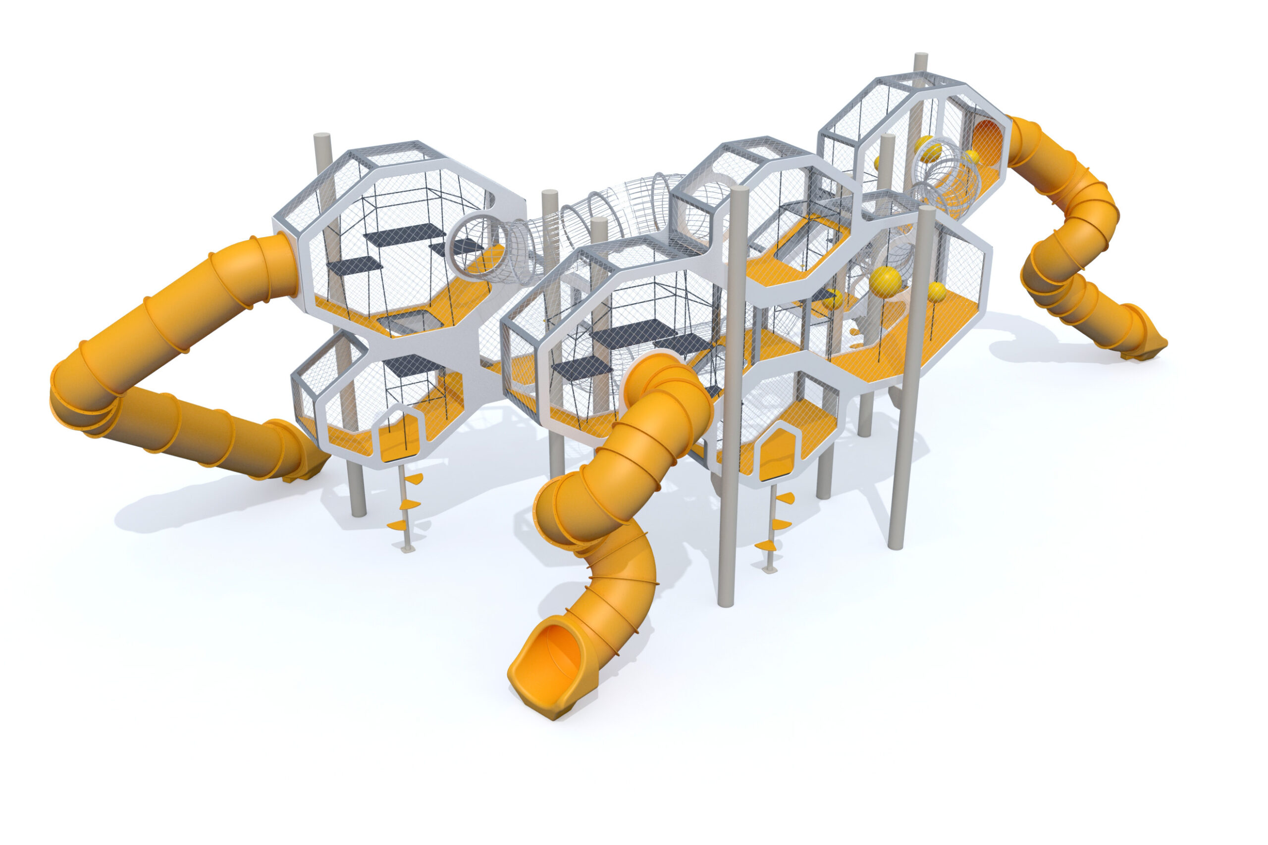 • 3 spiralna tunela s toboganom izrađenim od rotacijski oblikovanog polietilena.