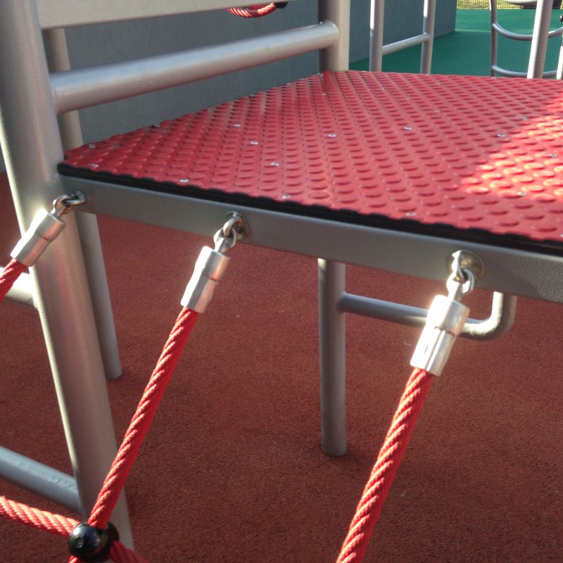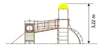 Višenamjenski set za penjanje s pet tornjeva. Konstrukcija seta je pocinčana, praškasto obojena i sastoji se od cijevi zaobljenog profila. Pod platforme prekriven je PE pločom s protukliznim točkicama. Opremljen je polipropilenskim užadima od 16 mm ojačanim čeličnom jezgrom. Površina tobogana izrađena je od nehrđajućeg čelika, stranice tobogana izrađene su od HDPE materijala. Plastični tobogan se može dodatno pričvrstiti.
