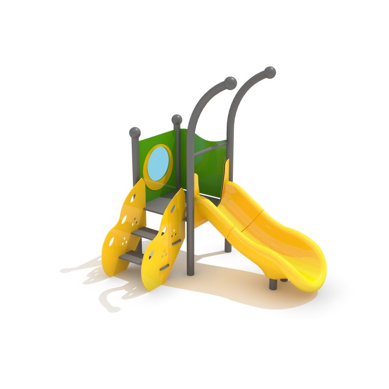Konstrukcija od nehrđajućeg čelika otpornog na vremenske uvjete i intenzivnu upotrebu. Postovi se završavaju kuglicama tako da uređaj izgleda kao puževi rogovi. Zidovi izrađeni od HDPE ploča. Jedan zid izgleda kao pult u trgovini što pruža veliku zabavu tijekom igre! Druga dva zida sastoje se od panela za prozore. Jedna otvorena ploča.