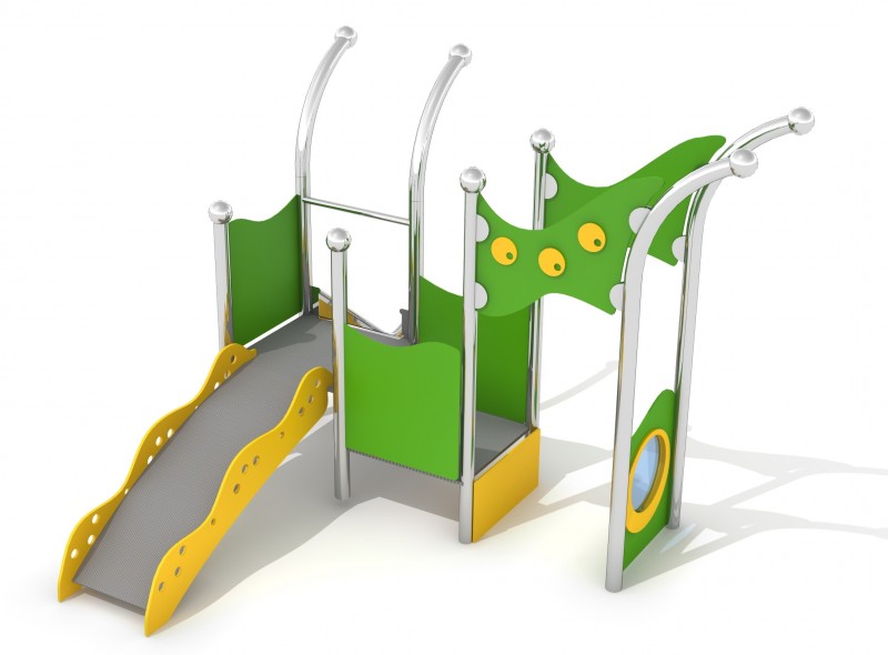 Visokoučinkovita zavarena konstrukcija od nehrđajućeg čelika otporna na vremenske uvjete (bez upotrebe stezaljki). Stupovi su završeni kuglastim ukrasnim elementima tako da uređaj podsjeća na puževe rogove. Zidovi tobogana, tornja i balustrada izrađeni su od HDPE ploča. Pod je izrađen od HPL ploče s protukliznom teksturom koja osigurava sigurnu upotrebu i sprječava zagrijavanje na suncu i lako smrzavanje zimi. Igralište je u skladu s normom EN 1176.
