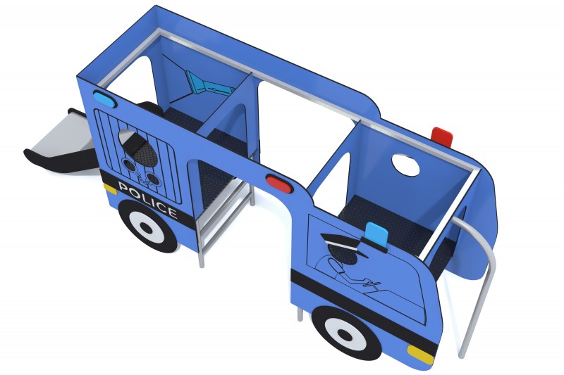 Set za igralište s toboganima koji izgledaju kao vatrogasno vozilo. Konstrukcija je izrađena od čelika, otpornog na vremenske uvjete i intenzivnu upotrebu. Noseći zidovi uređaja izrađeni su od HPL ploče, dok su dodatni ukrasni elementi izrađeni od HDPE-a. Pod je također izrađen od HPL ploče s protukliznom teksturom, što osigurava sigurnost korištenja.