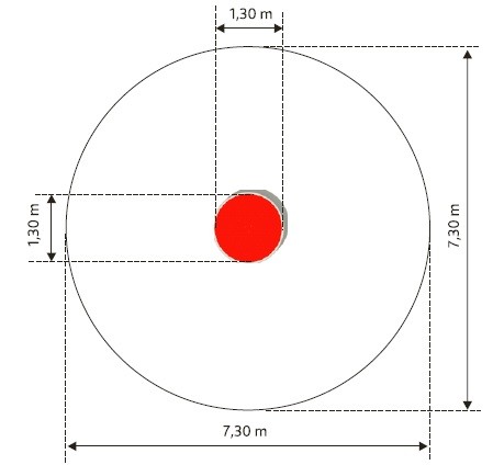 Spiner promjera 1,3 m. Rotirajući element s nagnutom platformom. Korištene komponente: pocinčani čelik i PE ploča. Zahvaljujući ovom rješenju površina uređaja je meka (više sigurnosti) i protuklizna. Štoviše, ne grije se tijekom sunčanih dana i ne smrzava se tijekom zime.