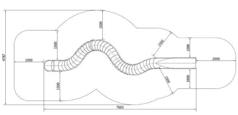 Tobogan je predviđen za ugradnju na prirodne ili oblikovane nasipe. Proizvod je spiralnog oblika. Dužina tobogana 7,68 m, širina tobogana 0,5 m. U potpunosti je izrađen od mat nehrđajućeg čelika. Ovaj tobogan treba postaviti na nasip visine 4,0 m.