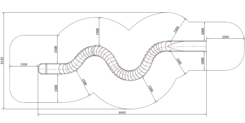 Tobogan je predviđen za ugradnju na prirodne ili oblikovane nasipe. Proizvod je spiralnog oblika. Dužina tobogana 8,94 m, širina tobogana 0,5 m. U potpunosti je izrađen od mat nehrđajućeg čelika. Ovaj tobogan treba postaviti na nasip visine 5,0 m.