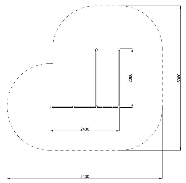 - Veličina sigurnosne zone: 5,43 x 5,06 m