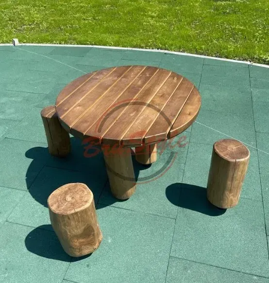 Na stolu je prikladno postaviti razne igre i zabavu za djecu. A četiri panja, smještena pokraj stola, stvaraju dodatni prostor za opuštanje i komunikaciju. Osim toga, izrađeni su od visokokvalitetnog drva i imaju čvrstu konstrukciju kako bi osigurali sigurnost i udobnost korisnika.