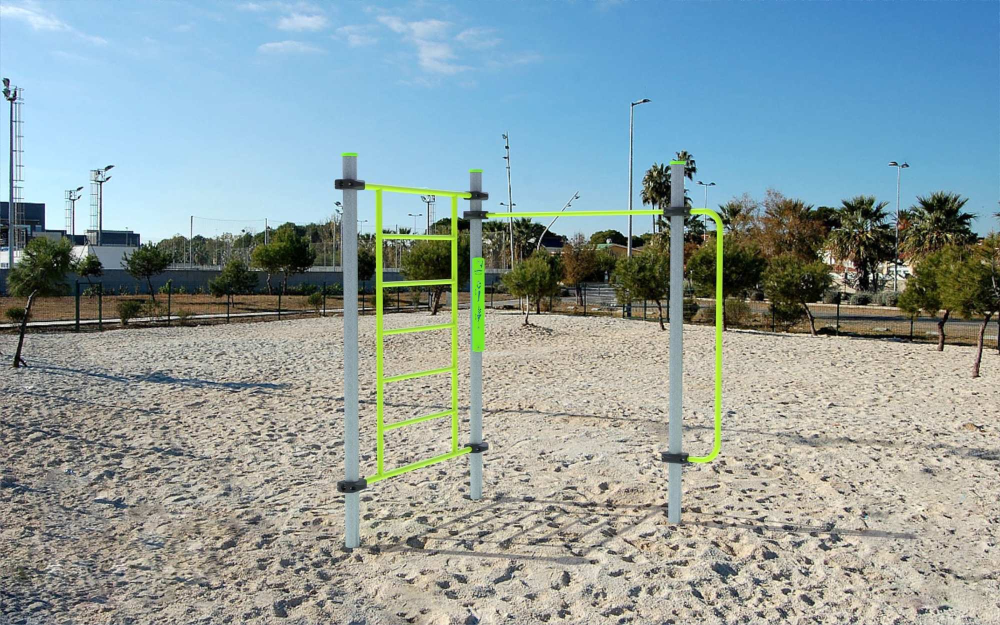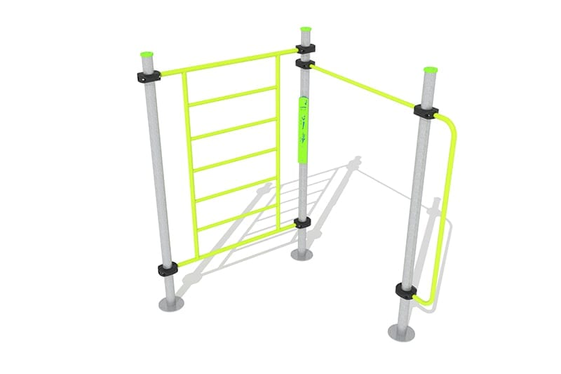 Set se sastoji od 3 stupa, 1 šipke za zgibove na različitim razinama, 1 švedskog zida i 1 jarbola za zastavu. Vertikalna šipka. Samo jedan korisnik po šipki. Vježba se mora izvoditi centrirano na šipki. Vježbe na elementima predviđenim za viseći položaj moraju se precizno koristiti u tom položaju.