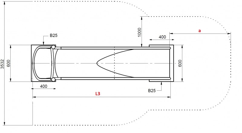- Sigurnosno područje na kraju tobogana: a = 2,0 m