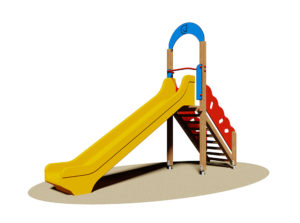 Popis komponenti: 1 ljestve za penjanje sa zaštitnim pločama koje djeluju kao rukohvati izrađene od okoumé šperploče od mahagonija s pantografiranim fenolnim vezama i bez rubova. Obrada impregnacijom u boji i završna obrada netoksičnim bojama na bazi voska razrjeđivim u vodi. N°1 tobogan od fiberglasa h. 134 cm izrađen od različitih slojeva smole visoke gustoće sa stazom dugom 300 cm Kao alternativa toboganu od stakloplastike može se montirati tunelski ili otvoreni polietilenski tobogan ili onaj s čeličnom stazom i drvenim stranicama. Dva su elementa povezana s dva okomita stupca presjeka. 9×9 cm koji su u gornjem dijelu spojeni pločom od oblikovane i pantografirane fenol-ljepljene šperploče okoumé od mahagonija. Obrada impregnacijom u boji i završna obrada netoksičnim bojama na bazi voska razrjeđivim u vodi. Struktura zajedno sa sigurnosnom ručkom u oblikovanoj čeličnoj cijevi i obojana u pećnici na 180°. Sastavljanje pomoću vijaka od pocinčanog čelika 8,8 i samosigurnosnih matica. Elementi poklopca matice od najlona u boji. Vruće pocinčani metalni priključci za sidrenje u tlo.