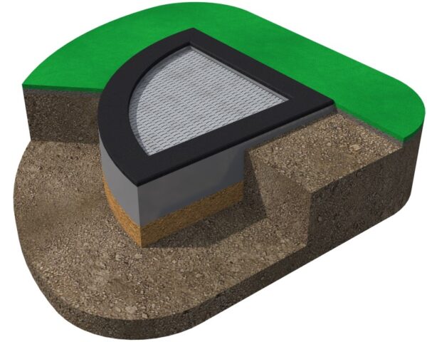 Trampolin vrhunske kvalitete za dugotrajnu upotrebu na otvorenom tijekom cijele godine; može se ostaviti čak i mokrim uvjetima. Trampolin je opremljen pocinčanim oprugama i podlogom za skakanje otpornom na vremenske uvjete. Do unutarnjeg ruba trampolin se može prekriti, a kao rezultat vidimo samo podlogu za skakanje na površini igrališta.