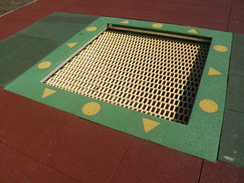 Trampolin kvadratnog oblika za igrališta koja se intenzivno koriste. Podloga za skakanje dostupna je u 8 boja i brojnim uzorcima po izboru. Trampolin je dostupan u dvije verzije: otvarajuća i neotvarajuća. Otvarajuća verzija olakšava čišćenje unutar uređaja.