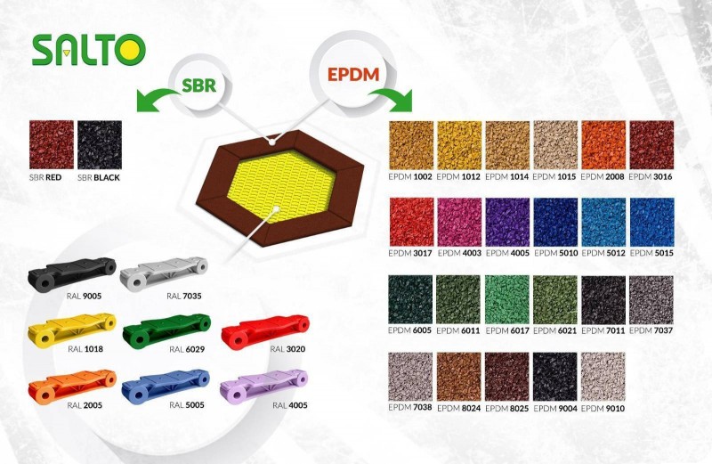 Trampolin peterokutnog oblika za igrališta koja se intenzivno koriste. Podloga za skakanje dostupna je u 8 boja i brojnim uzorcima po izboru. Trampolin je dostupan u dvije verzije: otvarajuća i neotvarajuća. Otvarajuća verzija olakšava čišćenje unutar uređaja.