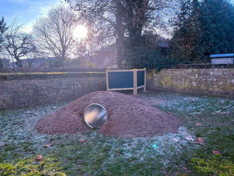 Tunelska cijev u obliku kružne cijevi predviđena je za ugradnju unutar prirodnih ili umjetnih nasipa. Duljina cijevi 4,00m, promjer 0,85 m. Ulaz i izlaz usječeni pod kutom od 30º u odnosu na os tunela. U potpunosti je izrađena od mat nehrđajućeg čelika.