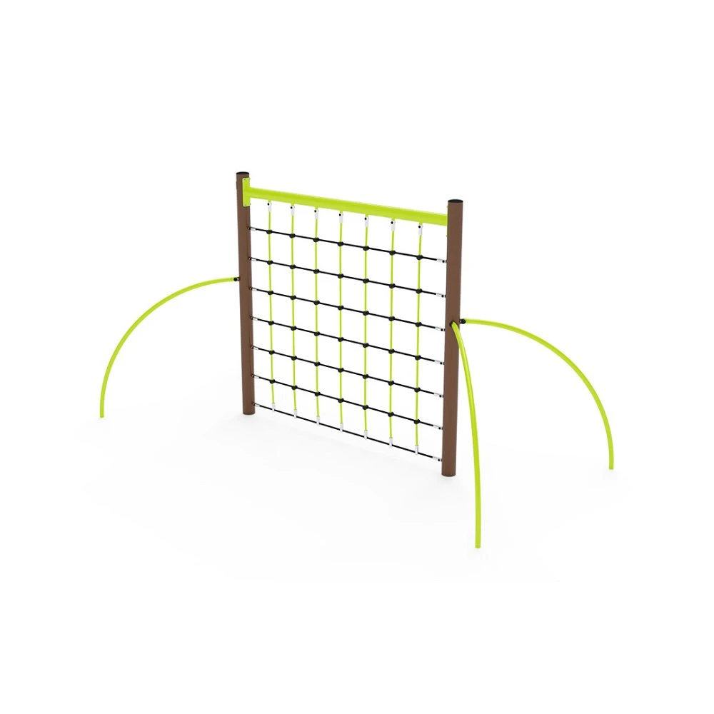 Velika stijena za penjanje po užetu – trometarski vrhunac svakog igrališta. Ova visoka i široka stijena za penjanje po užetu poduprta je za veću stabilnost s četiri lučne noge, koje djeca mogu koristiti kao šipke za vješanje, prelaske ili penjanje. Element za igru izrađen je od vruće pocinčanog čelika s kvalitetnom površinskom završnom obradom. Spojevi su od nehrđajućeg čelika i prekriveni plastičnim kapicama kako bi se povećala sigurnost i dugotrajnost spojeva. Užad su izrađena od poliesterskih vlakana, koja su namotana oko središnje jezgre. Ova konstrukcija užeta povećava njegovu čvrstoću i otpornost na mehanička naprezanja. Sam poliester ima mnoga pozitivna svojstva: otporan je na mikroorganizme i vremenske uvjete, brzo se suši nakon kiše, postojane je boje i karakterizira ga visoka čvrstoća. Velika stijena za penjanje po užetu VVZ-LP006 certificirana je prema standardu STN EN 1176.