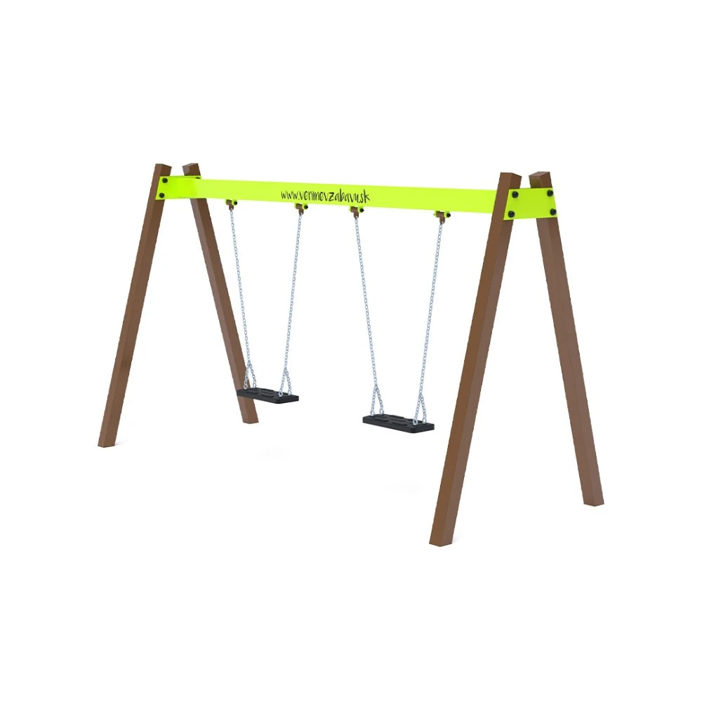 Viseća dvostruka ljuljačka s dva klasična sjedala izrađena je od vruće pocinčanog čelika, koji je premazan praškasto pečenom bojom. Spojni materijali su od nehrđajućeg čelika i prekriveni plastičnim kapicama radi povećanja trajnosti i sigurnosti. Ljuljačka VVZ-VH006 certificirana je prema standardu STN EN 1176. Preporučuje se korištenje travnate prostirke kao udarne površine.