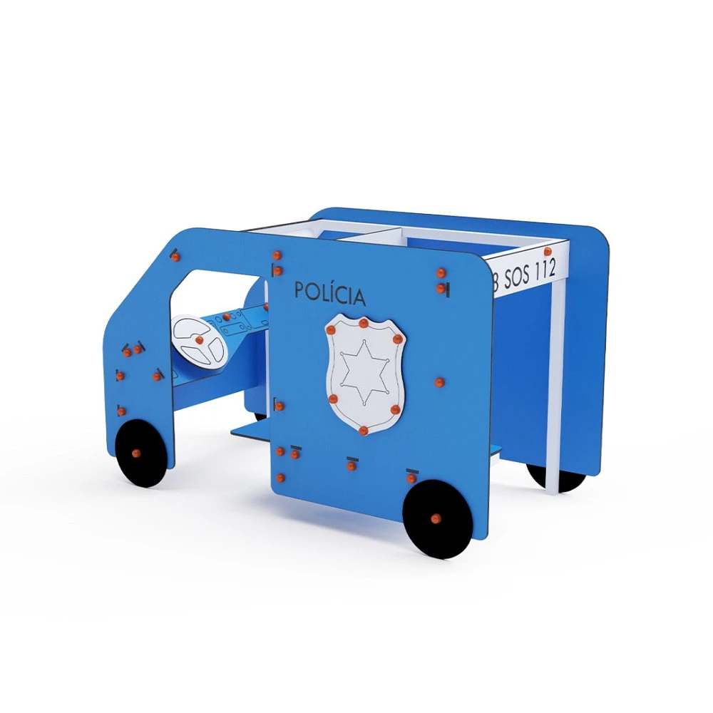 Igralište – policija idealan je tematski element za poticanje dječje mašte i timskog rada, što ga čini prikladnim čak i za najmlađu djecu. Rotirajući volan i tematski detalji pojačavaju impresivno iskustvo igre. Čelična konstrukcija otporna je na vremenske uvjete zahvaljujući vrućem pocinčavanju i izdržljivom praškastom premazu. HPL materijal je kemijski otporan, UV stabilan – postojane boje, netoksičan, reciklirajući i nelomljiv, što sprječava ozljede od oštrih rubova ili iverja. Svi spojevi su od nehrđajućeg čelika i prekriveni plastičnim kapicama kako bi se osigurala trajnost i sigurnost.