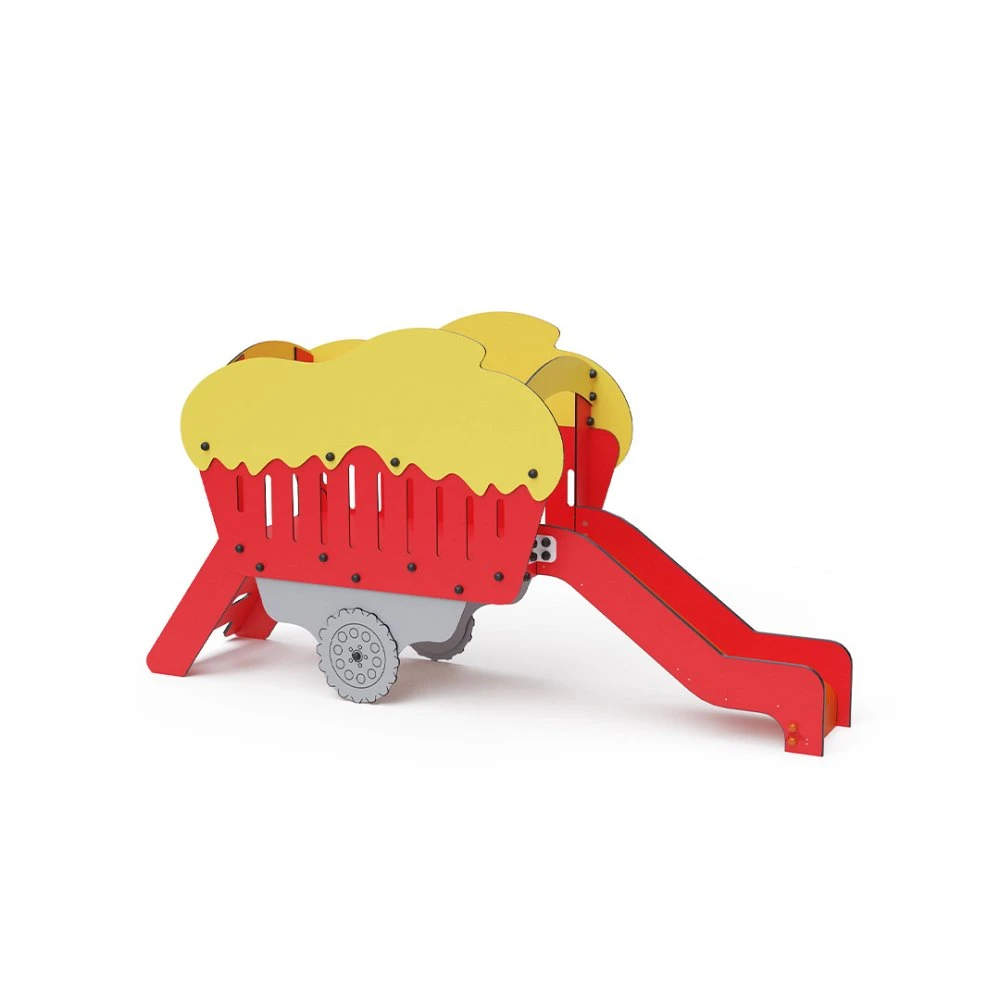 Traktorska prikolica je razigrani tematski element osmišljen za poticanje dječje mašte, što ga čini idealnim čak i za najmlađe igrače. Čelična konstrukcija izgrađena je da izdrži vremenske uvjete, zaštićena vrućim pocinčavanjem i izdržljivim praškastim premazom. HPL ploče su kemijski otporne, UV stabilne – postojane boje, netoksične, reciklirajuće i nelomljive, što smanjuje rizik od ozljeda od oštrih rubova ili fragmenata. Svi spojevi izrađeni su od nehrđajućeg čelika i prekriveni plastičnim kapicama radi povećanja izdržljivosti i sigurnosti.