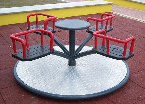 Vrtuljak za igrališta promjera 1,62 m i četiri sjedala smještena na 4 kraka vrtuljka spojena na središnji stup s okruglim krugom koji pomiče proizvod. Pod je obložen PE pločom. Zahvaljujući ovom rješenju pod vrtuljka je mekši, sigurniji i protuklizan. Štoviše, ne grije se tijekom sunčanih dana i ne smrzava se tijekom zime.